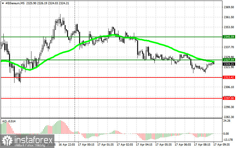 Scenario #2: Ethereum can be bought from the lower boundary of $2,313 if there is no market reaction to its breakout in the opposite direction to levels $2,327 and $2,345.