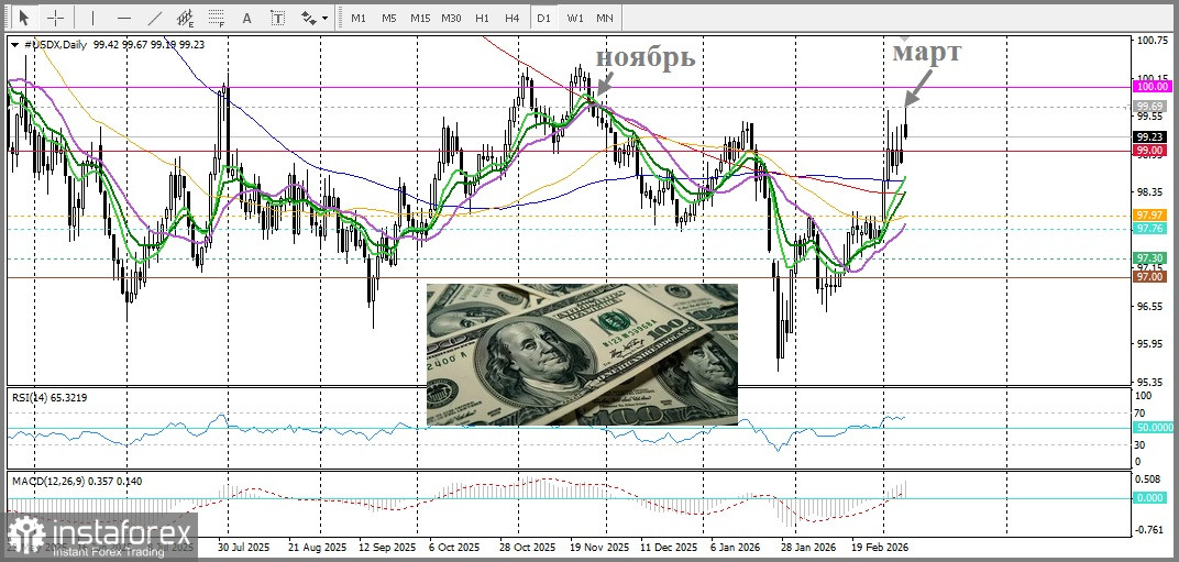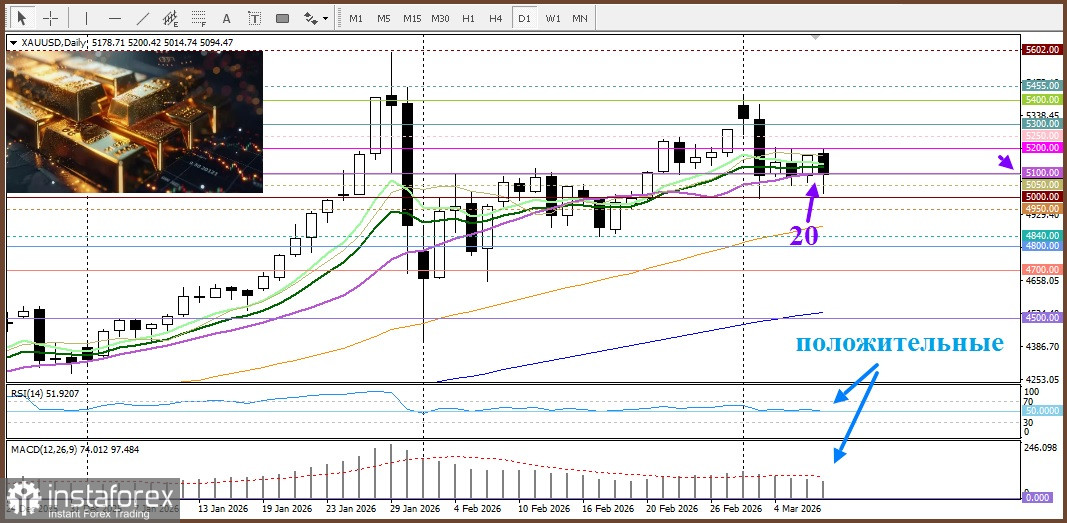 В то же время внутридневной взлет нефтяных котировок более чем на 25% раздул инфляционные ожидания и резко ухудшил прогнозы скорого смягчения монетарной политики Федеральной резервной системы США, нивелируя слабые данные по несельскохозяйственной занятости (NFP) от прошлой пятницы. В результате доллар США взлетел к максимумам с ноября 2025 года, что ограничивает потенциал восстановления золота и заставляет быков проявлять повышенную осторожность.