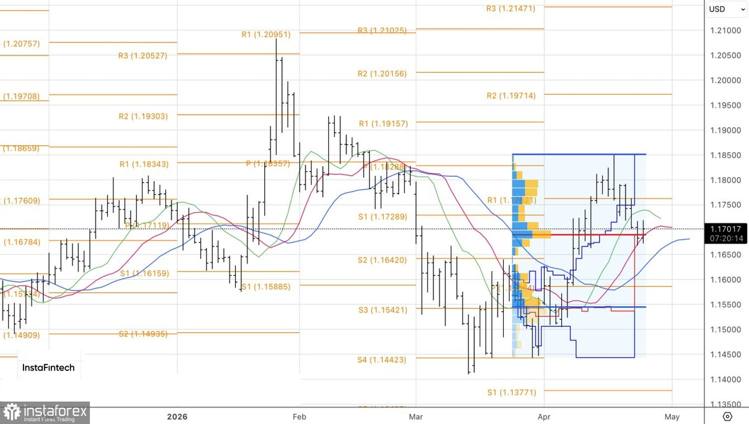 Технически на дневном графике EUR/USD имеет место отскок от справедливой стоимости на 1,169. Однако если «быкам» не удастся прорваться выше сопротивлений на 1,1715 и 1,1730, это станет свидетельством их слабости и основанием для формирования коротких позиций по региональной валюте против американского доллара.