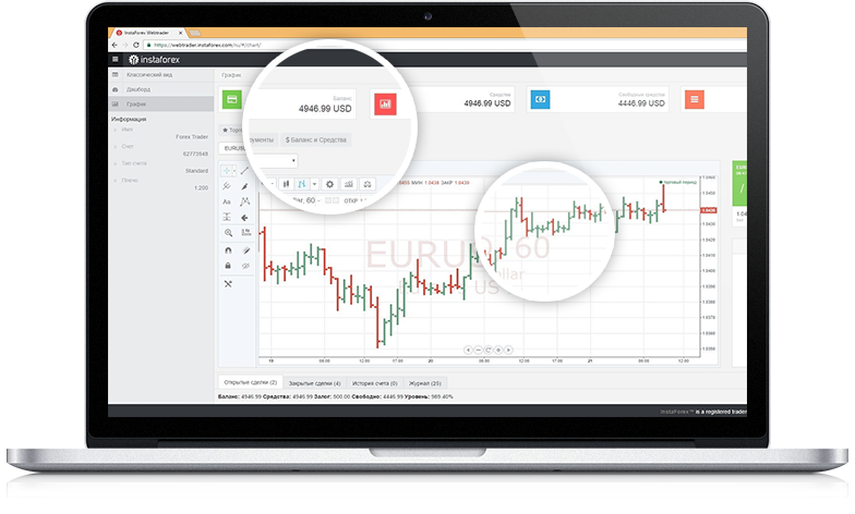 Gear доступен для всех торговых счетов ИнстаФорекс, в том числе и для демосчетов. В веб-терминале можно вести торговлю всеми торговыми инструментами Форекс – валютными парами, контрактами CFD на металлы, фьючерсы и индексы. С нашим веб-терминалом даже начинающие трейдеры будут чувствовать себя профессионалами.