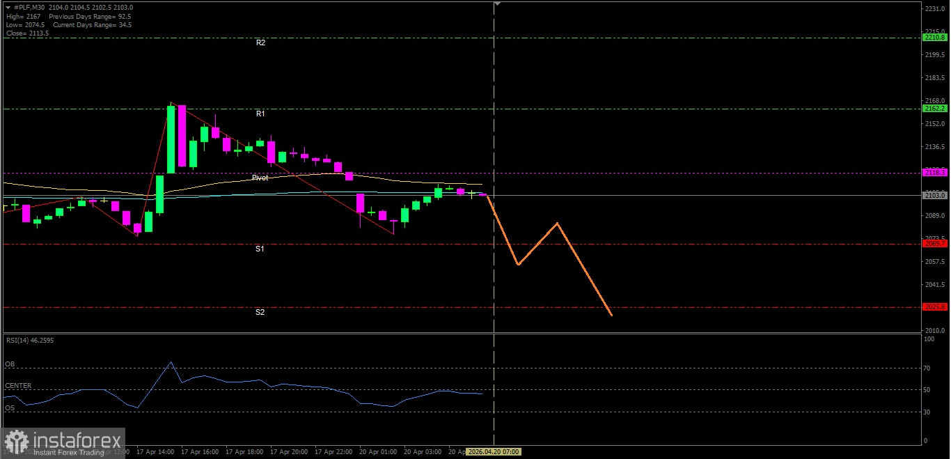 Dengan kondisi pasar yang beragam, dimana dikonfirmasi oleh pergerakan harga #PLF yang menembus kedua EMA berkali-kali namun masih berada dalam tekanan Seller dimana hal ini dikonfirmasi oleh RSI(14) yang berada di area Netral-Bearish, maka dalam waktu dekat Platinum berpeluang untuk melemah menuju ke level Support terdekatnya.