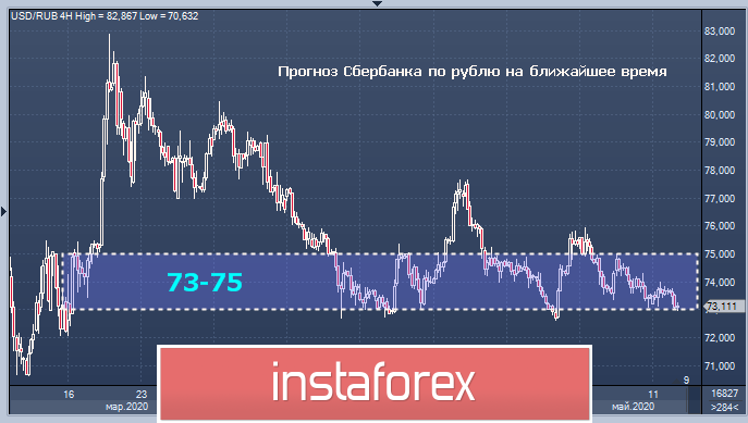 Валютные стратеги Сбербанка прогнозируют укрепление рубля по отношению к гринбеку в диапазоне от $73 до $75. Расчет производился на ближайший промежуток времени, начиная с середины мая до конца июня 2020 года. В банке зафиксировали падение волатильности в рубле с начала текущего месяца. По мнению аналитиков, небольшое укрепление «россиянина», отмеченное с 30 апреля по 8 мая 2020 года, объясняется улучшением настроений на глобальных рынках, постепенным подъемом нефтяных цен и ростом спроса на российские госбонды. Отметим, что интерес к российским облигациям федерального займа (ОФЗ) увеличился благодаря смягчению денежно-кредитной политики ЦБ РФ и ожиданию очередного снижения ключевой ставки.