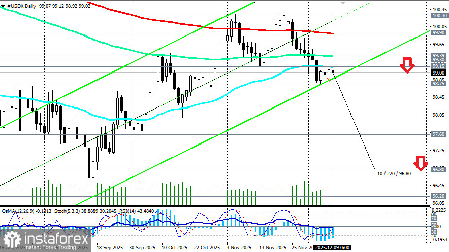 Торгуясь вблизи отметки 99.00, индекс доллара USDX продолжает снижаться, двигаясь в зоне медвежьего рынка, ниже ключевых уровней сопротивления 99.20 (ЕМА200 на 1-часовом графике, 99.90 (ЕМА200 на дневном графике), 101.45 (ЕМА200 на недельном графике).