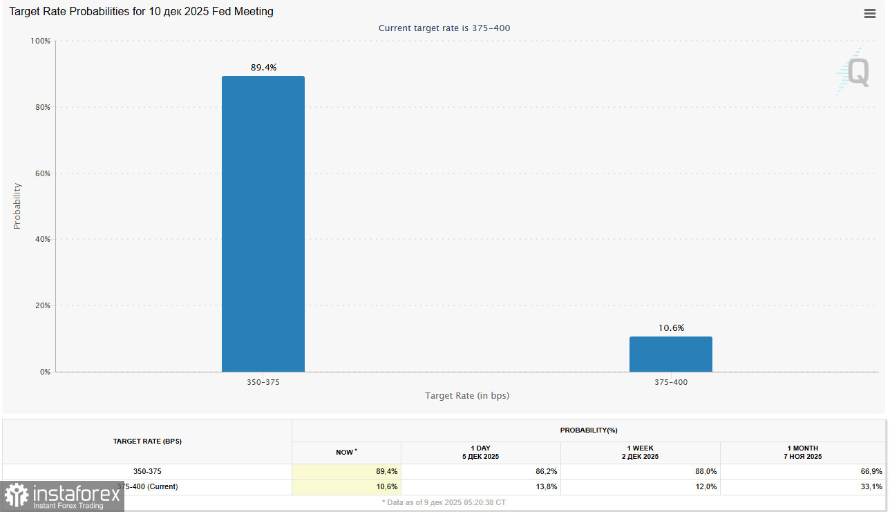 Рынки с почти в 90% вероятностью ожидают снижения процентной ставки ФРС на 25 базисных пунктов на этой неделе.