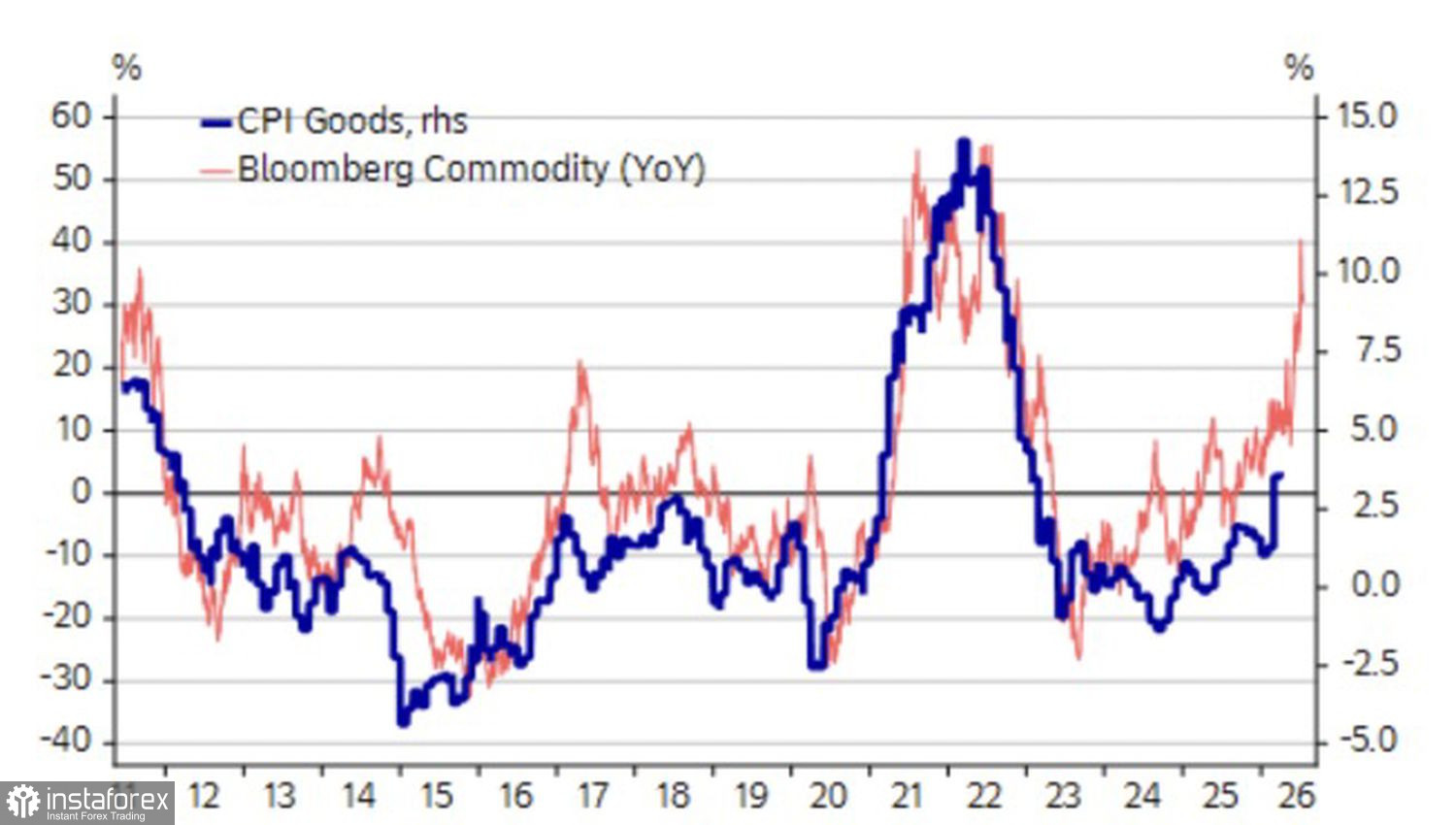 Динамика индексов сырьевых товаров и CPI США