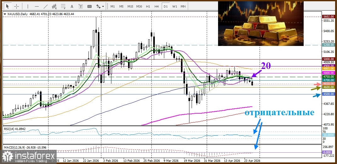 Золото (XAU/USD) продолжает находиться под давлением продавцов уже второй день подряд, снижаясь в направлении круглого уровня $4600, и уже опустившись ниже поддержки $4650 долларов. Так как доллар США восстанавливается