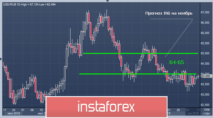 В понедельник, 11 ноября, пара USD/RUB находилась выше уровня поддержки 63,6 руб. за 1 доллар США, несмотря на периодические попытки уйти вниз. По мнению аналитиков, движение к 62,5 руб. за 1 доллар США пока откладывается. Дальнейшие прогнозы возможны после прояснения ситуации по поводу возможного торгового перемирия между Вашингтоном и Пекином. Ближайший уровень сопротивления пары USD/RUB проходит вблизи отметки 64,1 руб. за 1 единицу американской валюты.