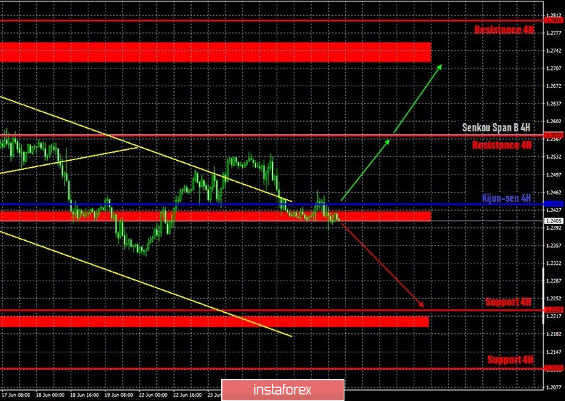 If the EUR/USD currency pair continued its downward movement yesterday, then the GBP/USD currency pair stayed in one place almost the entire day - in the support area of 1.2403-1.2423, having failed to overcome it. Thus, a further hike down is delayed until the bears manage to overcome this area. The overall technical picture looks unambiguously in favor of sellers, since the price is below the Kijun-sen and Senkou Span B lines. However, a few days earlier, the pair's quotes also left the descending channel, which made market participants think about possibly forming an upward trend. The upward trend has not begun, but the general picture of the state of affairs has become confused. Yesterday, even quite strong macroeconomic statistics from overseas could not affect the pound/dollar.