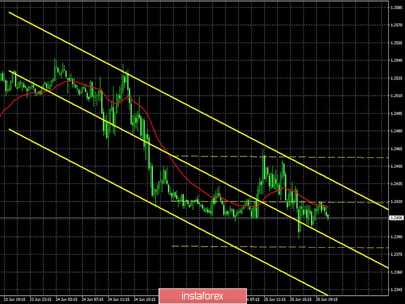 The latest COT report, which covers the dates June 10-16, shows that during this time period, professional market players were busy closing sales contracts. That is, the picture for the reporting week was observed exactly the same as for the euro. Demand increased during the indicated period, but not because the pound or the euro became more expensive. On the contrary, demand for the dollar decreased, and traders closed Sell contracts, which led to the growth of European currencies. This is precisely what we told traders to focus their attention on earlier, since there were simply no special reasons to buy the euro and the pound in recent weeks. Nevertheless, both currencies rose. It is also worth noting that, during the reporting week, speculators also closed purchase contracts, hedgers closed both types of contracts, and in general, the pound lost about 32,000 more contracts. Thus, banks, large companies, investment funds and others were engaged in closing all types of transactions during the reporting week, rather than opening contracts. The current week is very controversial. At first, the pound rose in price, then it became cheaper, and yesterday it just stood still. A new COT report could show minimal changes.