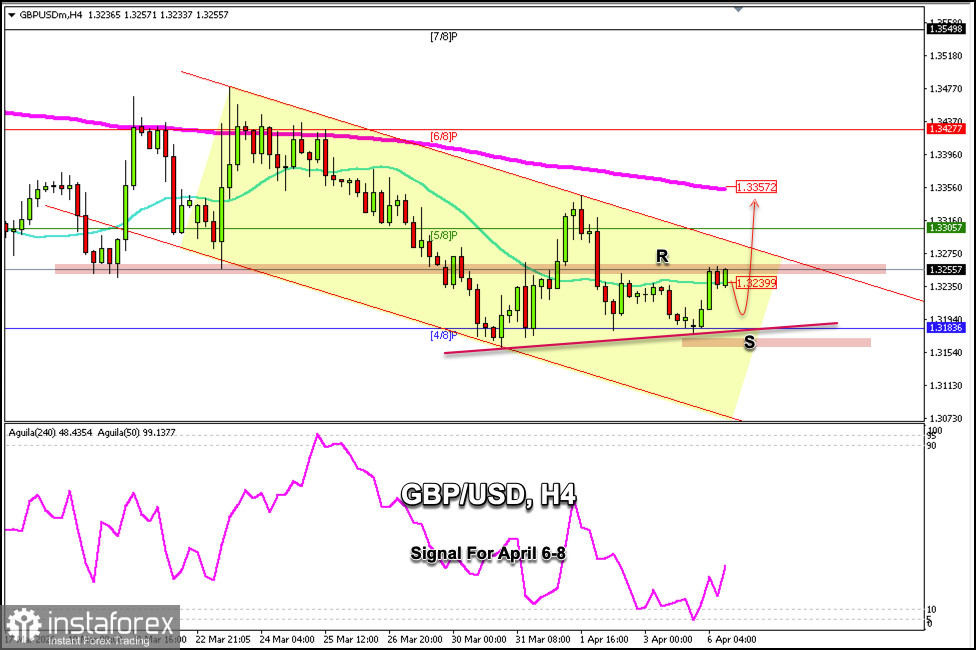 06.04.2026 10:37 PMO GBP/USD está sendo negociado em torno de 1,3255, recuperando-se após encontrar forte suporte próximo ao nível 4/8 Murray. Durante a sessão europeia, a libra esterlina apresentou viés positivo; no entanto, agora enfrenta forte resistência próxima de 1,3260. Esse nível pode manter a libra sob pressão de baixa, e podemos esperar que retorne aos níveis de suporte em 1,3220.
