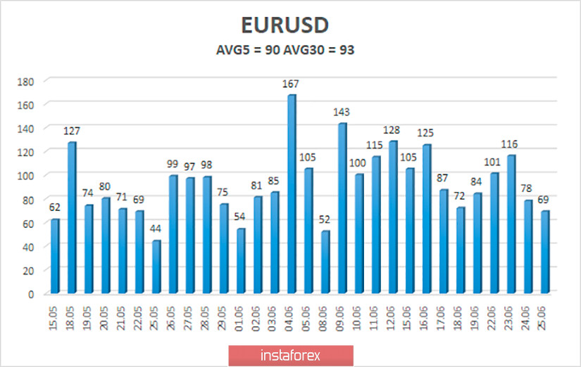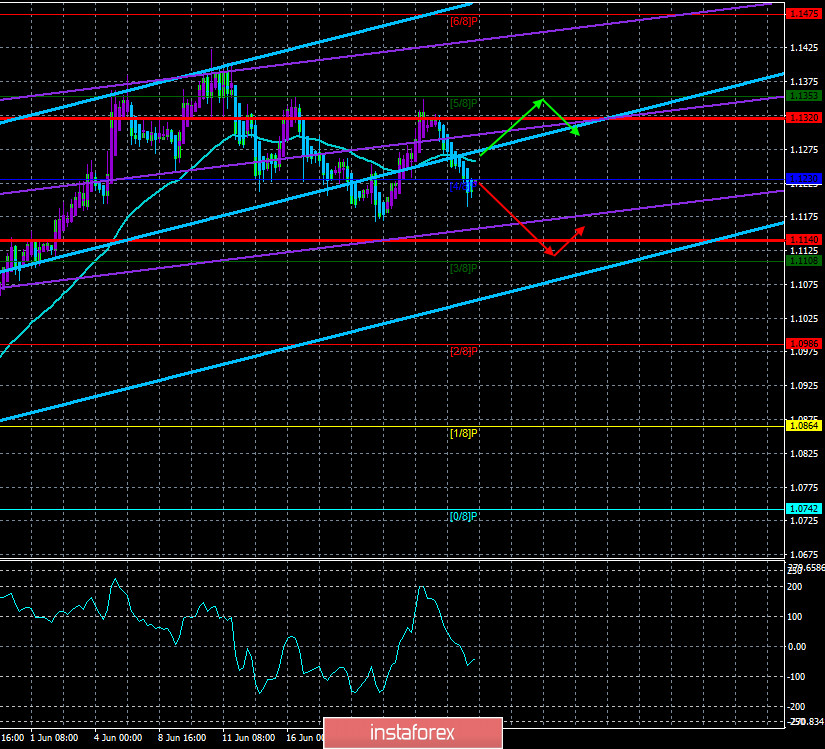 Обзор пары EUR/USD. 26 июня. Доллар США вновь доминирует, но спесь медведей может быть сбита около уровня 1,1170. Экономическое равновесие Евросоюза и США