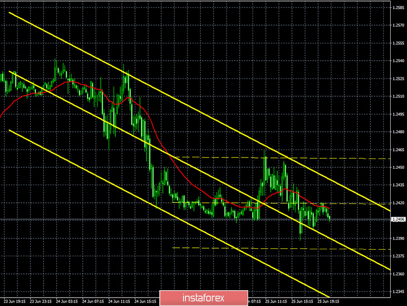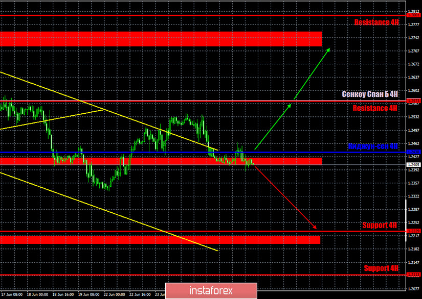 Горящий прогноз и торговые сигналы по паре GBP/USD на 26 июня. Отчет COT. Продавцы растерялись около области 1,2403–1,2423, но должны собраться и преодолеть ее иначе – рост