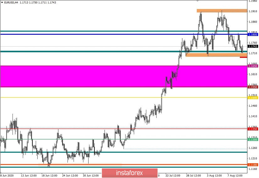 Исходя из общей динамики, было выявлено, что рынок завершил инерционный восходящий ход, который имел место в июле, а на его место пришел временный флет 1,1700/1,1910, в границах которого развивается котировка. Вероятно, что боковое движение является временным пристанищем для спекулянтов, что может сыграть на руку предстоящему ускорению и если ссылаться на перепроданность американского доллара, то шанс нисходящего развития высок.