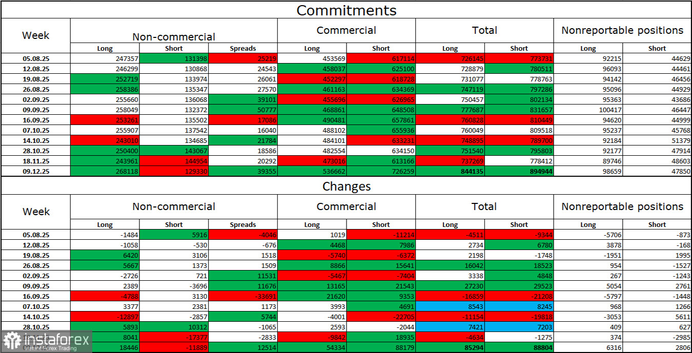 Тридцать три недели подряд крупные игроки избавлялись от Short-позиций и наращивали Long. Затем начался «шатдаун», а сейчас мы видим ту же самую картину: быки продолжают наращивать Long-позиции. Политика Дональда Трампа остается наиболее весомым фактором для трейдеров, так как вызывает множество проблем, которые будут иметь долгосрочный и структурный характер для Америки. Например, ухудшение состояния рынка труда. Несмотря на подписание нескольких важных торговых соглашений, аналитики опасаются рецессии в американской экономике, а также потери независимости ФРС под давлением Трампа и на фоне ухода в отставку Джерома Пауэлла в мае следующего года.