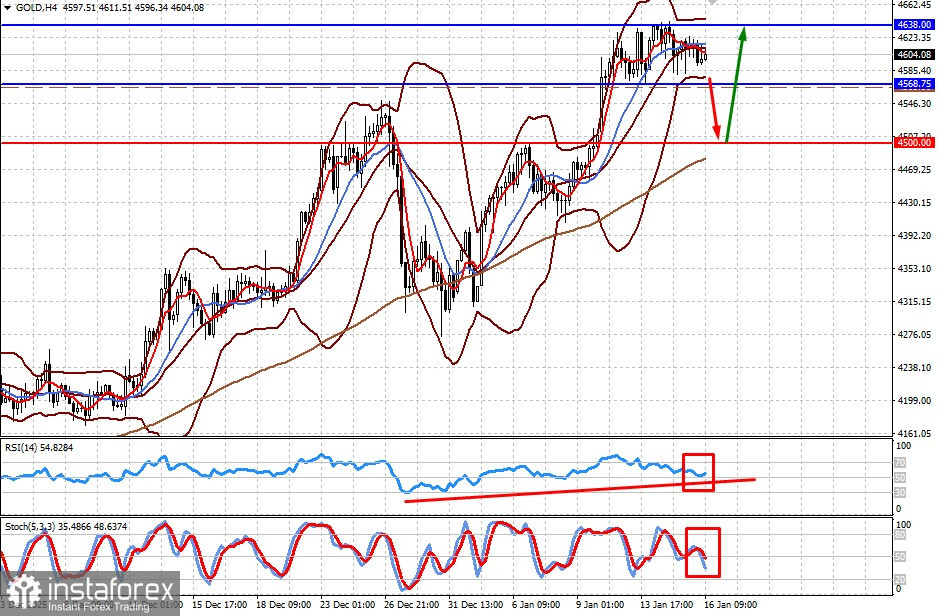 Цена на золото консолидируется в очень узком диапазоне. Ее прорыв вниз может привести к ограниченному снижению к 4500.00 с последующим разворотом вверх и повышение к 4638.00. Уровнем для его покупки может служить отметка 4565.00.