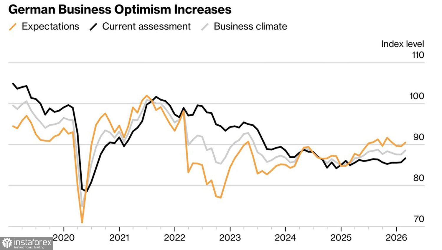Европейский союз пока справляется с тарифами. Об этом свидетельствует как первый за три года выход немецкой деловой активности в производственном секторе в зону расширения выше 50, так и позитивная динамка индикаторов бизнес-климата Германии. В феврале они превысил прогнозы экспертов Bloomberg.
