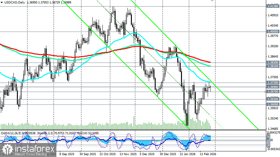 Пока нефть удерживается на повышенных уровнях, резкий рост USD/CAD выглядит маловероятным. Однако при усилении доллара пара может попытаться закрепиться выше 1.3750 (подробнее - см. наш сегодняшний обзор «USD/CAD: сценарии динамики на 25.02.2026».