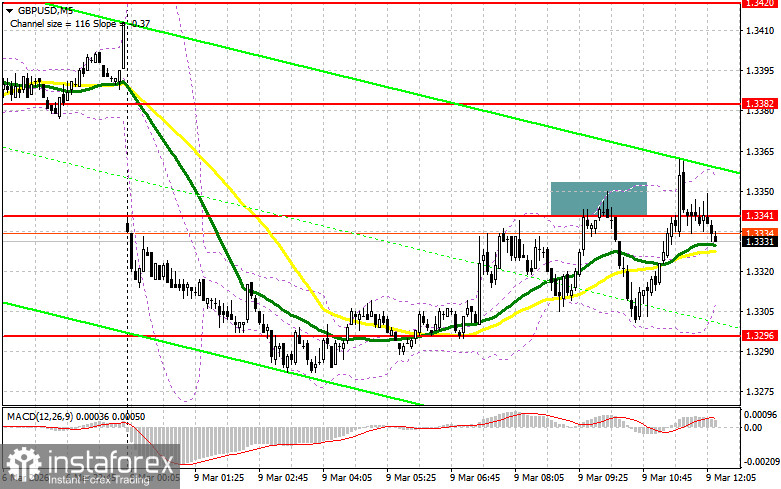 В своем утреннем прогнозе я обращал внимание на уровень 1.3341 и планировал от него принимать решения по входу в рынок. Давайте посмотрим на 5-минутный график и разберемся с тем, что там произошло. Рост и формирование ложного пробоя в районе 1.3341 привели к точке входа на продажу фунта, что вылилось в падение пары на 30 пунктов. На вторую половину дня техническая картина была пересмотрена.