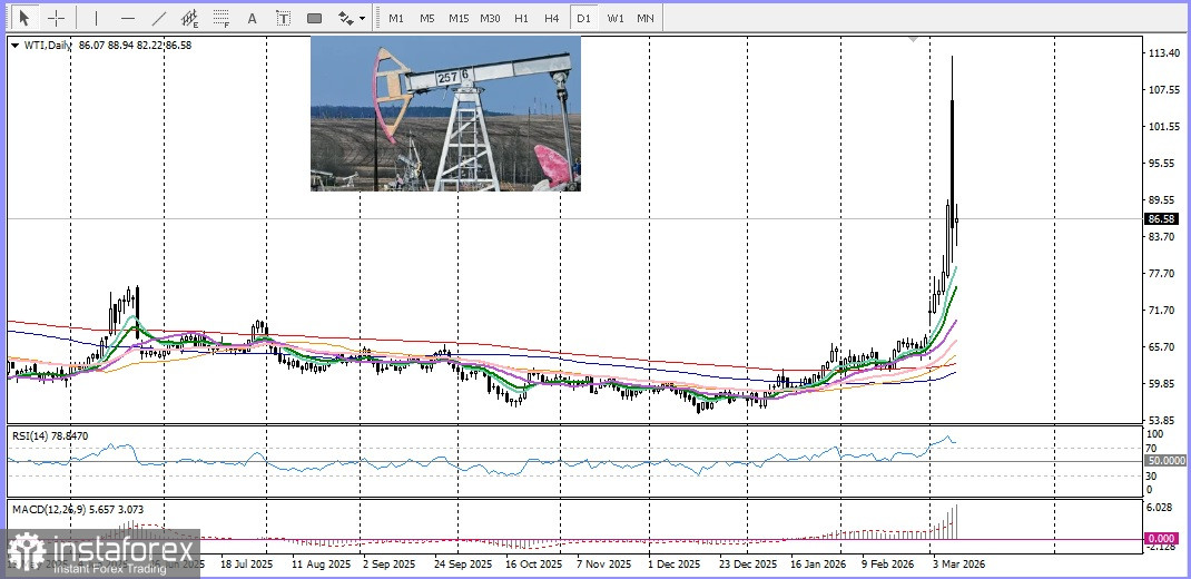 Золото продолжает неплохой отскок от психологического уровня $5000 долларов за унцию. Иранские власти отвергли заявления президента США Дональда Трампа о скором завершении ближневосточного конфликта как бессмысленные, предупредив, что безопасность региона возможна либо для всех, либо ни для кого. Корпус стражей исламской революции Ирана (КСИР) подчеркнул, что Тегеран, а не Вашингтон, установит финал войны, что поддерживает геополитическую напряженность и стимулирует интерес к драгметаллу как к классическому убежищу. Нефтяные котировки возобновляют свой рост после вчерашнего крутого разворота от максимума, который наблюдался с июня 2022 года на фоне рисков сбоев поставок из-за Ормузского пролива.