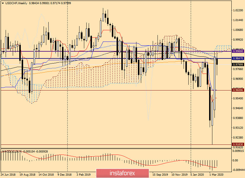 Si el ánimo alcista regresa y las operaciones semanales termina por encima de 0.9900, o incluso mejor, si el indicador Ichimoku abandona la nube, el aumento continuará hasta el área de paridad, el nivel psicológico y técnico simbólico de 1.0000.