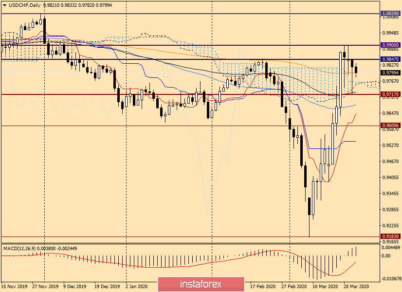 En el gráfico diario, después de la aparición de la vela para el 20 de marzo, el panorama ya se está volviendo bajista. Sin embargo, debe tenerse en cuenta que el par está disminuyendo de muy mala gana. Esto está indicado por una sombra particularmente larga de la vela de ayer.