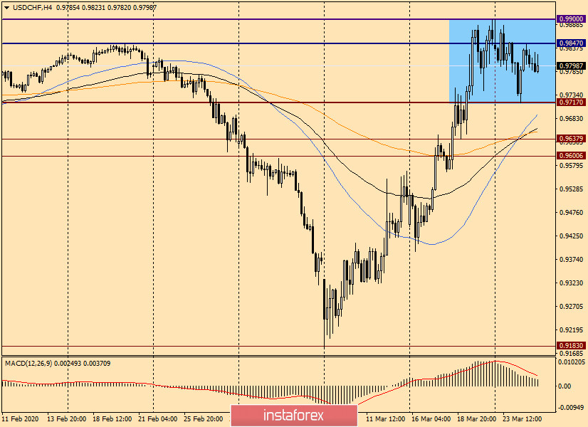En este período de tiempo, es claramente visible que el instrumento opera en el rango de 0.9717-0.9900. Para aquellos que operan con salidas de precios de rangos, puede intentar comprar a una ruptura de 0.9900.