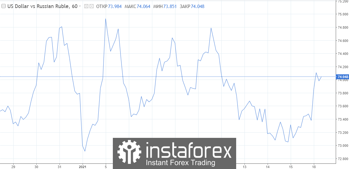 Западный мир негативно воспринял задержание вернувшегося в Россию Навального. Некоторые страны уже выступили с призывом за введение санкций к России. Ближайшей поддержкой для рубля является отметка 74,7, но она достаточно слабая и вряд ли выдержит натиск доллара. Поэтому первой целью для обесценивания рубля вполне можно назвать отметку 76,0 за доллар.