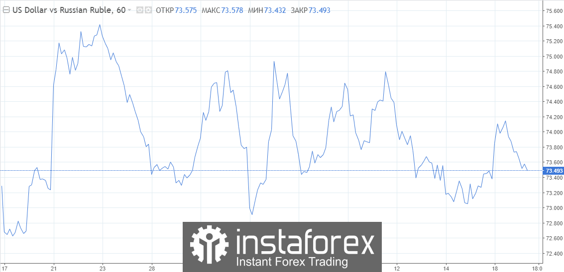 Сегодняшний внешний фон зовет к продолжению покупок рублевых активов. Пара USD/RUB на старте сессии ослабла и вновь зашла на территорию 73-й фигуры. Если аппетит к риску на мировых площадках не пропадет, рубль продвинется до 73,4 по отношению к доллару.