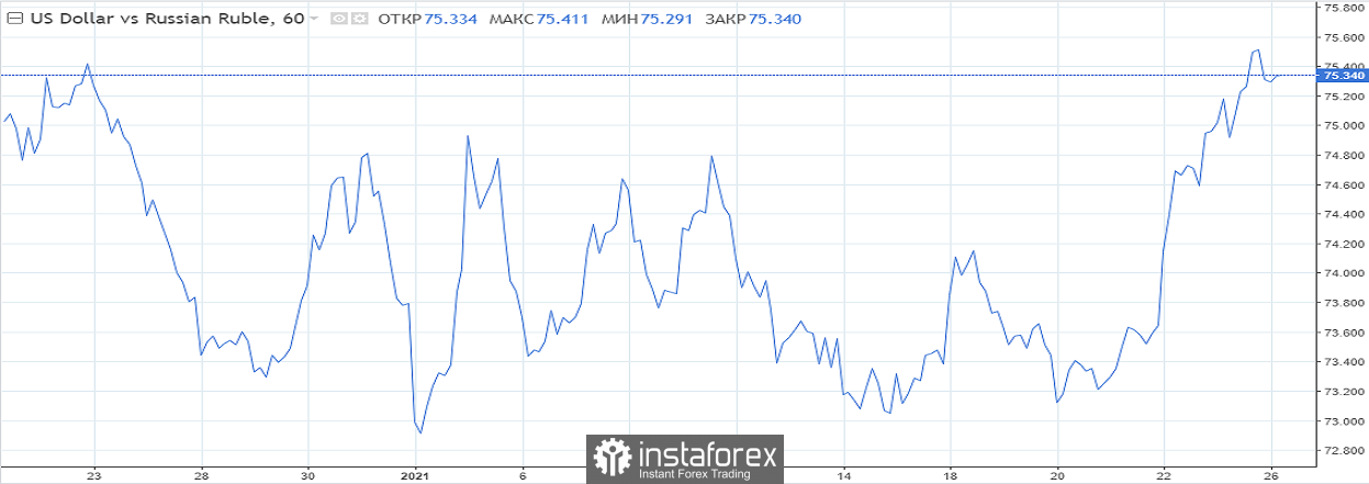 Динамика по рублю в ближайшие сессии ожидается нейтральная. Активность на рынках может быть низкой в связи со стартом двухдневного заседания ФРС. При появлении санкционной повестки Демократической партии США рубль, скорее всего, усилит снижение к доллару. Учитывая риски введения мер против российского суверенного долга и банковского сектора, геополитика может выступить в качестве главного фактора дальнейшего снижения курса рубля. При таком развитии событий пара USD/RUB получит шанс не только пробить отметку 76,00, но и претендовать на 78,00.