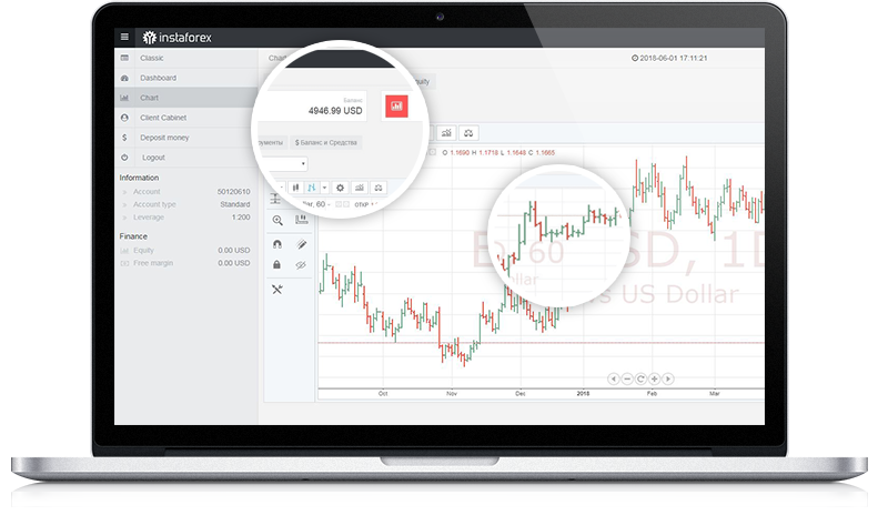 Gear is available to all InstaTrade accounts, including demo. Currency pairs, CFDs on metals, futures, and indices are available for trading in the web platform. Beginners will work like true professionals in this platform.